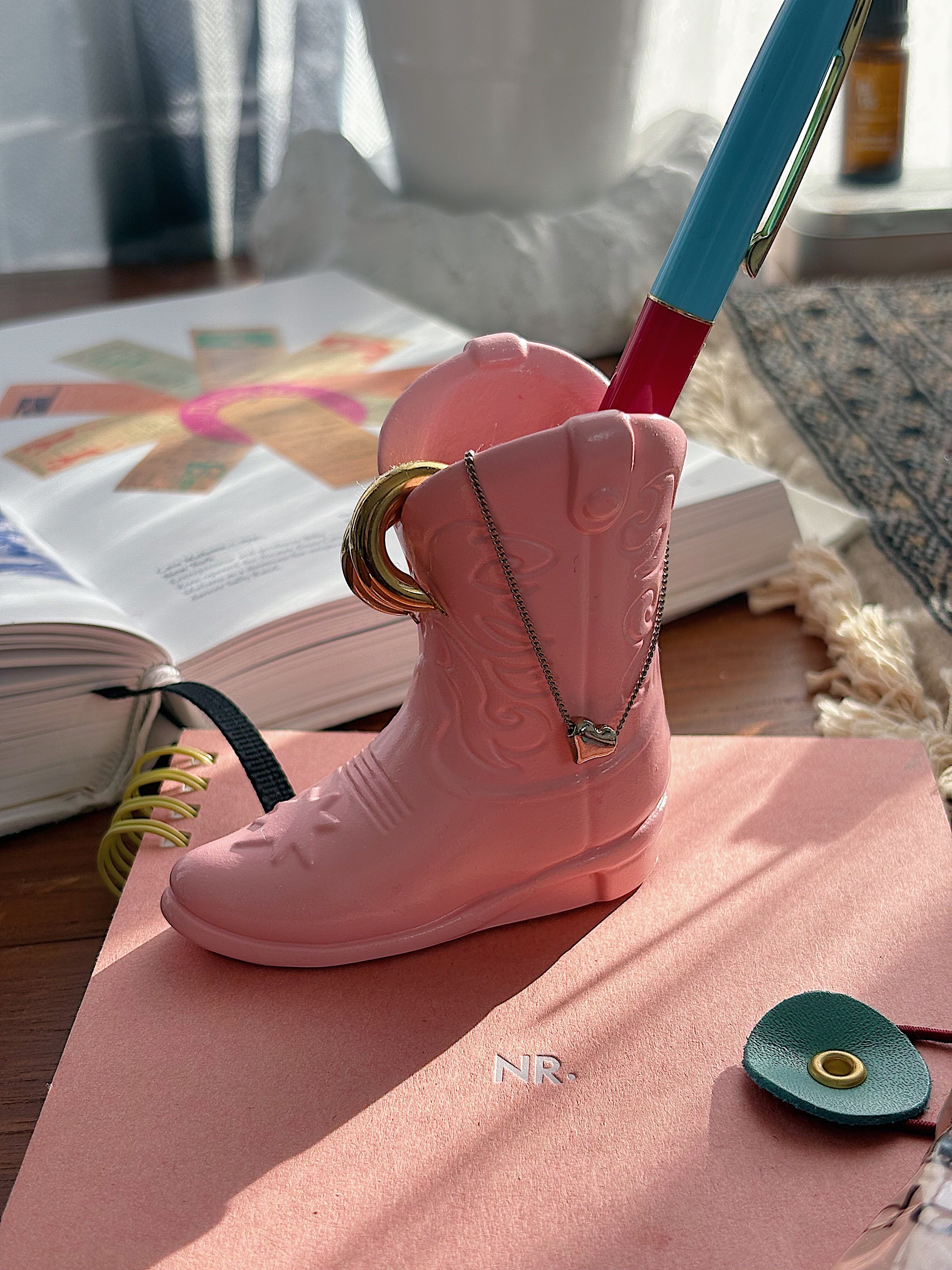 ペンやリップを入れて使えるブーツ型のユニークなスタンド
